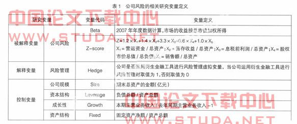 有关公司运用衍生金融工具进行风险管理和公司风险以及相关控制变量的研究变量的代码及定义如表1所示。