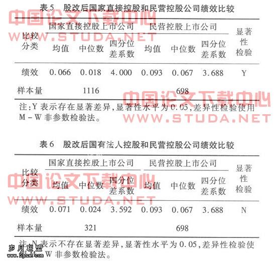 (二)股改后不同行业内部不同产权属性上市公司的绩效分析