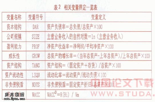 本文借鉴国内外学者对资本结构影响因素实证分析中对相关变量的界定,结合电力行业的特点,对上述影响因素代理变量进行界定(见表2)。