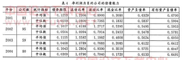 3.净利润为负的公司的偿债能力(见表4)