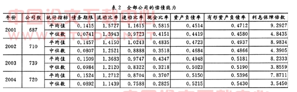 1.全部公司的偿债能力(见表2)