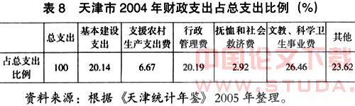 西方发达国家财政收入占GDP的比重达35%~50%,因而在雄厚的财政实力支撑下,发达国家用于社会保险的支出占到政府财政支出的20%~30%与此相比,天津市的财政支付能力十分有限,天津市2003年财政收入占GDP的比重仅为18%。