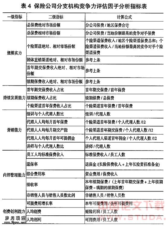 三、评价保险公司分支机构的方法