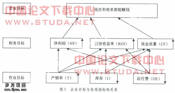 1.财务指标体系。判断一个企业是否获得了更多的利润,通常将企业目标分解成下列3个衡量指标:(1)净利润(Net Profit ,NP) 即一个企业赚多少钱的绝对量。一般来说,净利润越高的企业,其效益越好。(2)投资收益率(Return on Investment,ROI) ,表示一定时期的收益与投资的比。当两个企业投资不同时,单靠净利润是无法比较他们效益的好坏的。 (3)现金流量(Cash Flow,CF),表示短期内收入和支出的钱。没有一定的现金流量,企业也就无法生存下去。?