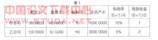 由表1可以看出,乙公司每股收益大于甲公司,但是该公司利润率却没有甲公司高,所以在分析每股收益时要考虑股票本身固有的股价。