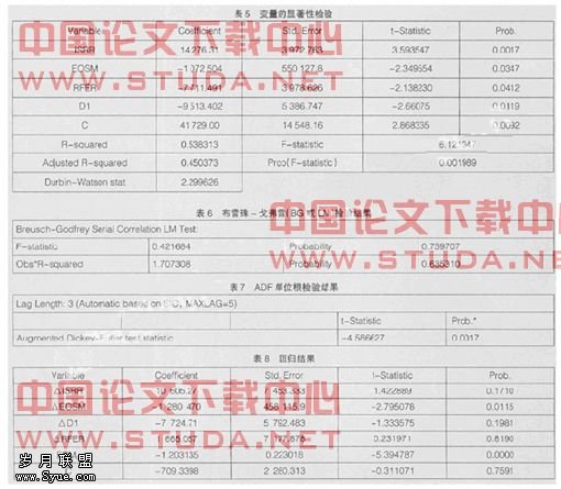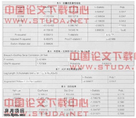 结果表明,可以拒绝原假设,残差序列平稳。这就表明解释变量与被解释变量之间存在协整关系,即具有一种稳定的长期关系。