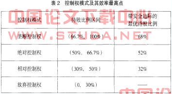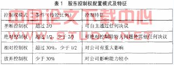 1.股东控制权及其配置模式。上市公司的控制权主要分为三个层面:(1)股东控制权,即股东通过持有股份的比例高低实现对公司的不同控制;(2)董事会控制权,即董事通过在董事会占有相对多数席位实现对公司法人财产权的控制;(3)经理控制权,即经理层对公司资产具有直接使用、运作等权利。股东控制权、董事会控制权和经理控制权相互制衡,形成“三权分离”的公司治理结构。“三权分离”的存在弱化了股东对公司资产的控制,但不可否认的是,董事会控制权和经理控制权都是从股东控制权派生的,在股东大会作为公司最高权力机构的法律框架下,具有本源性的股东控制权依然具有最终归属性和最终决定性的神圣权威。
