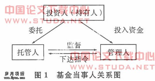 基金当事人是由:基金投资人(持有人)、托管人(一般为银行)、管理人(基金公司)三方共同组成。三者关系如图1: