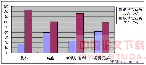 (1)业务收入来源多元化,虽然收入来源比重的分布不均衡,但各项业务收入大都在10%以上(除雷曼兄弟外),且整体而言,低风险业务贡献高于高风险业务。
