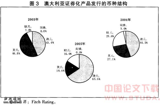 澳大利亚资产证券化市场从最初的境内市场逐步向离岸市场拓展。 自2000年起,证券化产品的离岸发行量已占据了主要的份额,主要币种为美元、欧元和英镑。 目前,随着澳元的走强,在境外以澳元发行的证券化产品也日益增多。