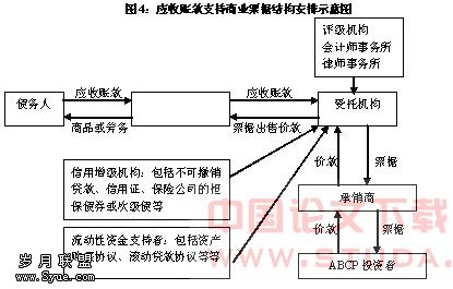穆迪公司、标准普尔公司、美林证券以及JP摩根公司等相关的研究结果显示,ABCP项目中典型的用来作为支持资产的对象包括贸易应收款、信用卡应收款等,由于这些款项的未来现金流量和违约率都可以准确地加以预测,因此投资者很乐意持有这些资产。与此同时,作为发行基础的应收款能够连续不断的产生,从而让出售方能够滚动发行票据,得到一个相对稳定的资金来源。此外,由于ABCP的到期日从1~4天到270天不等,投资者可以根据资产、负债匹配的需要,自由地选择所需的投资对象。