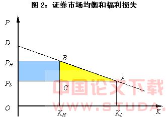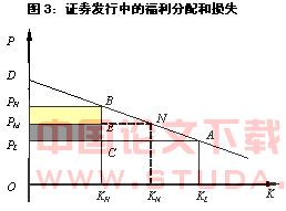 图2是在不同价格水平下的证券市场均衡。当对发行市场没有控制时,只要证券发行价格不低于资金的长期边际成本,就有足够数量的证券发行,这时市场的均衡价格为PL,均衡的发行规模为KL。由马歇尔关于消费者剩余的定义,我们可以定义三角形ADPL为证券投资者剩余。