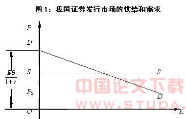 如果不考虑证券市场上市资源的稀缺性,将证券的供给市场考虑为完全竞争,那么,证券发行的价格将等于资金长期边际成本。在这个价格水平下,证券的供给是无限的,该假设与我国的市场实际相同。这样,证券市场的供给曲线为一条水平直线SS(如图1)。