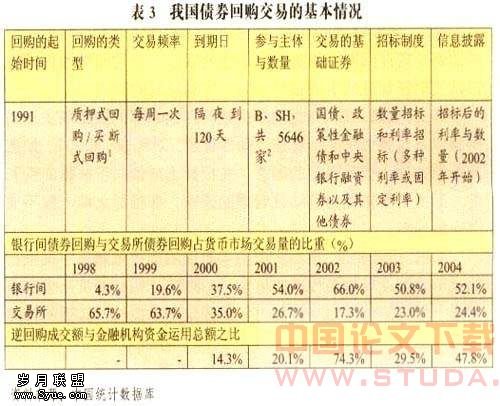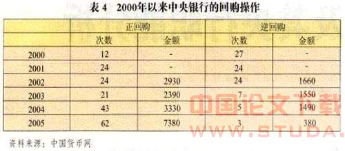 就回购操作在金融机构融资的重要性,由于受资料的限制,用年度逆回购总额与金融机构资金运用总额进行计算,可以粗略地估算出回购业务在金融机构的资产管理中的作用,从表3可以看出这一比重从2000年到2004年在不断上升。