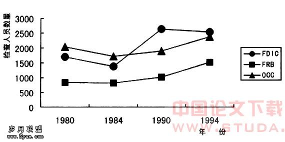 图1 美国联邦银行监管机构中检查人员数量变化图