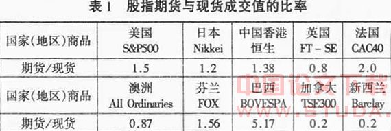 芝加哥商业交易所在1982年推出S&P500股价指数后,短短3年时间就大幅超过纽约证券交易所现货股票成交量。而日本情况更是惊人,其指数期货成交量远超过现货市场成交量,最高时曾超过现货市场成交量的10倍。表1列出了10个国家(或地区)的股指期货与现货成交值的比率情况。