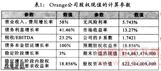 综上所述,计算Orange公司股权现值的参数和结果如下表所示: