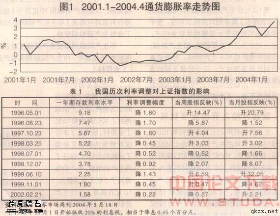 股市是宏观经济的晴雨表,国民经济的宏观走势对证券市场有着非常重要的影响。但在我国,由于工具缺乏创新,股市又主要受政策因素的影响,利率、税率、通货膨胀率等宏观经济参数的变动对证券市场走势的影响并不明显。下面我们从理论和实证方面对利率和通货膨胀率的变动对证券市场的影响作一探讨。