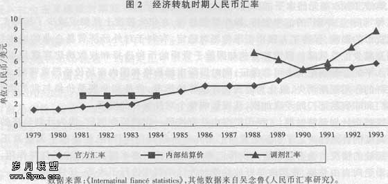 2.取消内部结算价,官方汇率和外汇调剂市场汇率并存时期(1985—1993)。