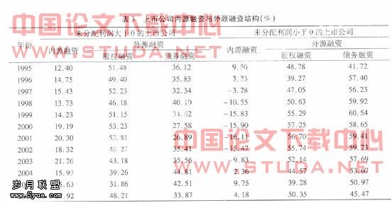 从表3中可以发现,中国上市公司存在明显的外部融资偏好,在上市公司的融资结构中,内源融资比例偏低,对于未分配利润为正的上市公司,外源融资比例远高于内源融资,一般比例都在80%~90%,而那些未分配利润为负的上市公司几乎完全依赖外源融资。在上市公司的外源融资中,股权融资并没有明显多于债务融资,相反,在未分配利润为负的公司中,在2005年以前的年度中,都是债务融资优先,只是在2006年,股权融资才多于债务融资。以上融资结构再一次证实了本文的观点,中国上市公司并不存在股权融资偏好,其融资行为表现为过度融资。