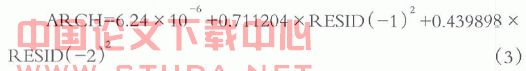 其中,ARCH是本期流动性指标的方差,RESID(-1)是上一期流动性指标的残差,RESID(-2)是上两期流动性指标的残差。