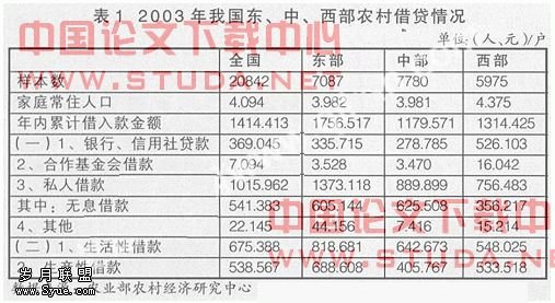 我国农村非正式金融组织包括私人自由借贷、私人钱庄、合会等,民间资金需求与供给的共同作用使农村非正式金融活动迅速。从农村民间借贷规模来看,根据全国农村固定观察点的常规调查汇总报告(2000),2000年农户借款中,银行信用社贷款占29.5%,农村合作基金会借款占0.4%,私人借款占68.4%,其他占1.7%,说明农村民间借贷仍然是农户借款的主要来源。2003年我国东、中、西部农村借贷情况(见表1)。由表1可以看出,全国私人借款占年内累计借入款金额的71.83%,东部地区此比率为78.06%,中部为75.44%,西部为57.55%。