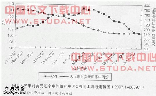 人民币“外升内贬”简单来讲就是人民币汇率的持续上升和国内通货膨胀背景下对内购买力的持续下降。本文用人民币对美元汇率中间价作为人民币对外价值的代表,用物价总水平来界定其对内价值,其中,物价总水平通常用CPI来表示。