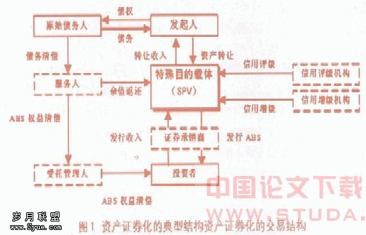 资产证券化的交易结构较为复杂,但是基本结构不变。如图1所示,在典型的资产证券化交易中,发起人通过创设资产,然后选择资产汇集成资产池,并通过两种方式转让这一资产池:一是发起人向信托受托人转让该资产池,换取基础资产所有权权益的转递凭证;二是发起人向商业信托受托人或特殊目的载体(SPV)转让资产池,后者发行以该资产池为担保的债务工具,并用所募集资金向发起人支付转让资产的价格。