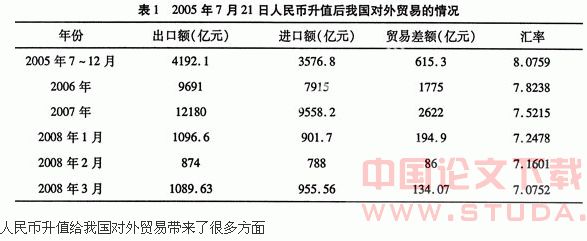 加工贸易占我国对外贸易的半壁江山,近年来加工贸易出口占我国商品出口比重接近55%,加工贸易进口,外商设备进口和一般贸易中的原料进口以占我国进口的60%左右,加工贸易和外商投资企业。我国加工贸易(加工贸易中低附加值的产品所占比重)人民币升值提高了我国出口商品的外币价格,我国的低附加值、低技术含量的产品就缺乏出口价格竞争优势,成本提高,一些弱小的依靠规模扩张和廉价劳动力生存的企业,不利于扩大海外市场,甚至在竞争激烈的市场中将被淘汰。