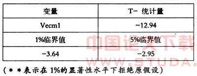 从上表可以看出,序列vecm1是平稳的,验证了经济增长的指标与反映股票市场的指标存在着协整关系。