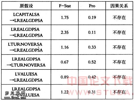 结果显示,资本率、交易率、换手率并不是经济增长的格兰杰原因,而经济增长也不是资本率、换手率和交易率的格兰杰原因,这说明了经济增长在一定程度上股票市场的的关系不显著。