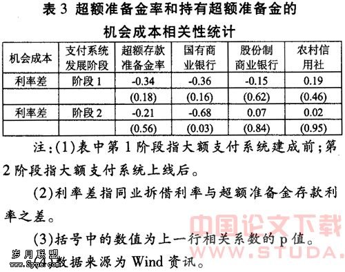 表3中大额支付系统完成全国上线后,股份制商业银行和信用社持有超额准备金的水平和机会成本相关系数为正数(没有通过显著性测试)。可能的原因如下:我国国有商业银行的资金相对较充裕,一直是回购和拆借市场中资金的净融出方,而其他商业银行或机构的资金相对较紧张,是主要的资金净融入方。股份制商业银行和农村信用社为预防央行自2006年7月5日起几乎每隔一个月就上调法定存款准备金率,及2007年,在资本市场异常火爆的同时,货币市场每隔一段时间,资金拆借利率就会发生脉冲式的大幅上涨,尤其是在新股申购特别是大盘股申购期间,拆借利率的暴涨而持有较高的超额准备金。