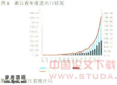 全省进出口总额同比增长26%,其中进口、出口同比分别增长13%和32.1%。贸易顺差462.2亿美元,占全国贸易顺差的45.4%。出口依存度和外贸依存度分别达46.6%和65%,外需日益成为浙江省增长的重要引擎。