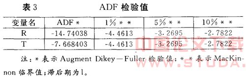 协整检验。协整理论可以用来分析经济变量之间的长期关系。在进行协整检验之前,必须进行单位根检验,以判断各变量的非平稳性及是否具有同阶的积分。本文采用的单位根检验方法是ADF(Augment Dikey—Fuller)检验法。运用上面的数据,ADF检验结果如下: