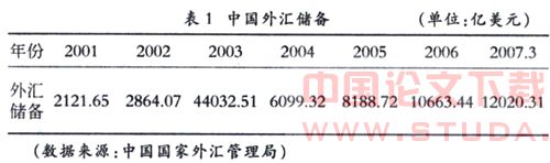 我国的外汇储备在2001年到2007年3月期间呈高速增长状态(见表1)。并于2006年2月,外汇储备额达8537亿美元,首次超过日本外汇储备额8501亿美元,跃居世界第一大外汇储备国,外汇储备的迅速增长的这种状况,也进一步助长人民币升值。虽然从2005年7月21日起,我国就实行了浮动汇率制度,声称不再盯住单一美元,但是因为其浮动范围过于小,在本质上,固定汇率制度毫无差别。所以在面对这种高储备额加上美国又不承担和维持美元的汇率水平的情况下。人民币面临两难选择:“钉住美元”一起贬值,反之选择升值。毫无疑问,在目前相对“钉住美元”的浮动汇率制下,人民币只有继续“钉住美元”才不会遭受损失。否则,美元贬值而人民币升值,则不能在双边贸易上达成金额平衡,中国持有的美元资产必将遭受贬值损失,这就等于中国用真金实银去换美国的名义上等价实际上又贬值危险的纸币,而中国的损失全部被美国捞走。因此,对外要保持人民币汇率基本稳定。再者,我国较多的国际储备也表明了我国政府干预外汇市场,稳定货币汇率的能力相对较强。故我国外汇储备的增加增强了外汇市场对我国货币的信心,然而也在一定程度上引发了人民币升值的趋势。