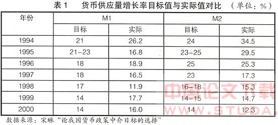 综上所述,无论从可控性,还是从相关性角度讲,M1作为我国现行货币政策的中介目标无疑比M2具有更良好的特性。因此,1996年起,央行便以M1作为我国货币政策的中介目标,而把M0和M2的增长率作为政策操作的监测指标。
