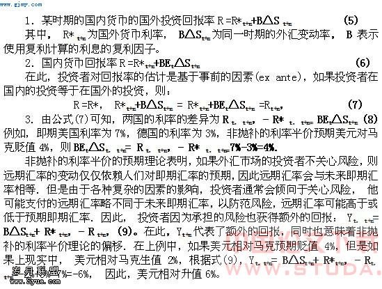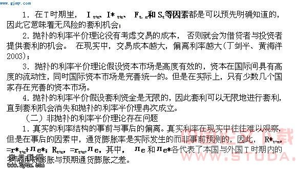 如上述讨论,从利率平价理论的机制本身来看,利率平价理论在预测未来的汇率变动上存在一些缺陷。
