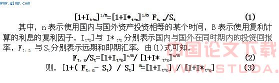 英国学家凯恩斯(John Keynes)于1923年首先提出的利率平价说(Theory of Interest Rate Parity),解释了了利率水平的差异直接影响短期资本在国际间的流动,从而引起汇率的变化。根据理论平价理论,投资者为获得较高的收益,会把资金从利率较低的国家转向利率较高的国家.资金的流入将使利率较高国家的货币汇率的存在贬值预期.因此, 两国之间的即期汇率与远期汇率的关系与两国的利息差异有密切的关系。投资者投资于国内所得到的短期利率收益应该和按照即期汇率折成外汇在国外投资并按远期汇率买回本国货币所得到的短期投资收益相等。一旦出现由于两国利率之差引起的投资收益的差异,投资者就会进行套利活动,直至汇率固定在某一特定的均衡水平。虽然该理论的前提假设上存在一定的缺陷,但是利率平价说突破了传统的国际收支、物价水平的范畴,从资本流动的角度研究汇率的变化,奠定了汇率理论的基础。利率平价理论包括抛补的利率平价说(CIP)和非抛补的利率平价说(UIP)。非抛补的利率平价是由于各种因素引起的“费雪敞开(Fisher Open)”。理论界一般认为,只有在市场效率很高、具有信息高度透明和不存在任何扭曲的情况下,两种利率平价水平才会相等(CIP=UIP)。