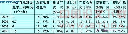 2003年末至2006年末,我国通货存款比(M0/D)年平均下降了0.05%,法定存款准备金率总共提升了3%,而货币乘数(m)相对较稳定,年平均仅上升了0.03%。原因在于,尽管法定存款准备金率上升了3个百分点,但是,总存款准备金率没有发生较大的变动。