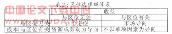 2 陕西省广告市场发展的不平衡和偏置性。我们引入区位这一产业学的基本概念,来说明这一问题。区位是产业布局理论的基础概念。区位理论确定了各种经济活动在何处进行的原则。新古典经济学认为,区位选择实际上是企业追求利润最大化目标的自发行为,不同的地点、不同的市场及技术条件,使企业面临成本与收益的取舍,从而也面临一个区位选择矩阵(如表2所示):
