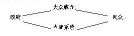 这种传播的特点是:政府是传播中心,处于中心外的受众之间彼此没有正式的沟通渠道。于是大众传媒在此刻就担起政府非组织传播的渠道。当然大众传媒由传统意义上的传播者开始变为单纯的“传声筒”和“布告牌”,而政府则成为真正意义上的传播者。