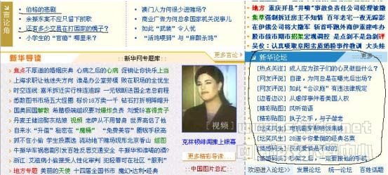 新华网首页现在有两个栏目都有网友意见,一是“言论角”,以转发传统媒体与其他网站的言论为主,但也夹有网友的评论,二是“新华论坛”,系新华网BBS系统中网友新闻评论的精选(图2)。这两个表达“意见流”的栏目,在新华网首页上的位置都比较突出,“言论角”在第一屏中,“新华论坛”在第二屏的上部。