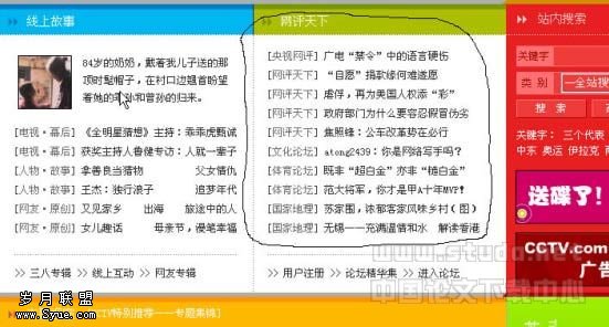 图2 新华网首页上的“意见流”栏目人民网在第一屏中也有两个“意见流”栏目,一是“网友说话”,二是“强国社区”(图3)。CCTV网站首页中则有一个同类性质的栏目叫“网评天下”(图4)。