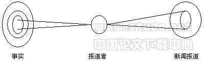 从图中可见,新闻报道者与客观事实以及新闻报道直接发生关系,但新闻报道与客观事实之间没有直接关系,只有见解关系。从客观事实到新闻报道经历两个阶段。首先是新闻报道者经验事实阶段;其次是报道事实阶段。新闻报道的真实性由这两个阶段决定,即由经验事实的正确性和报道事实的准确性决定。前者是基础,后者是条件。
