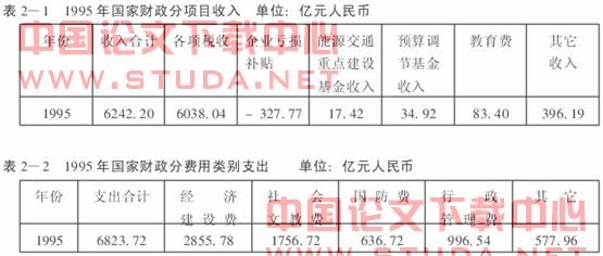 如果我们舍去行政管理产出的其它一些效果,直接用财政收入来作为行政管理的间接产出并以其来作出评价其经济性的依据,在理论上会存在一定的误差,但它可以提供一种评价的思路。从财政支出的各项目来看,它不仅对经济效果有直接的作用,而且也是取得的社会效果好坏的最重要的经济来源。因此,对行政管理产出的评价和考核,用财政收入来作为评判依据是比较合理的。因此,对行政管理经济性的评价标准和考核办法就可以利用其与财政的相关性转化为定量的评价方法。具体的评价指标也完全可以借用现行我国财政分项目收入情况和国家财政分费用类别支出情况的指标。(见表2—1、2—2。②资料来源于1996年统计年鉴)
