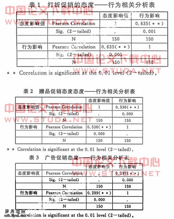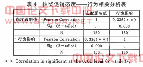 本文认为购买者对于促销的反应可界定为态度和行为两个变量,并且认为促销会使消费态度发生变化,正向的态度认可和积极的行为促进应该是完全相关的。因此为了揭示W公司使用的促销方式对这两者的影响是否是相关?相关程度有多大?四种形式的促销产生的影响哪组的相关性较大?这种相关性表示了购买者的行为受到促销影响的程度有多大?我们根据问卷收集的数据做了以下的态度——行动的相关分析。