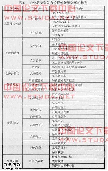 品牌竞争力评价指标的筛选
