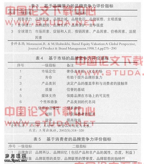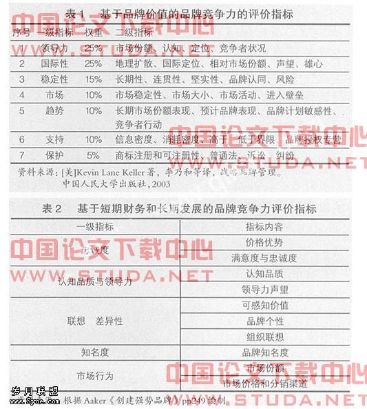 品牌竞争力的评价指标综述