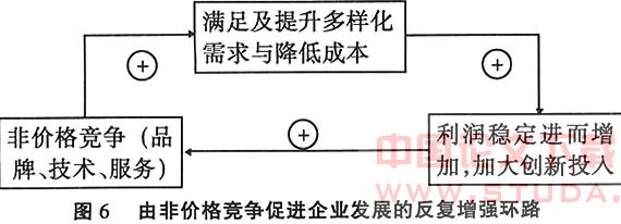1.非价格竞争是改进技术、提升服务与品牌的重要基础。在约束价格竞争并主动转向非价格竞争的情形下,企业的经济效益与品质、品牌、技术、服务的关系,可以形成如图6所示的良性发展循环。