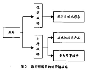 根据上述旅游目的地营销的两种战略,可以明确政府对旅游目的地营销的职能,即促销战略主要针对旅游目的地的整体形象,而支持战略则主要针对战略性旅游产品和旅游目的地的重大节事活动。